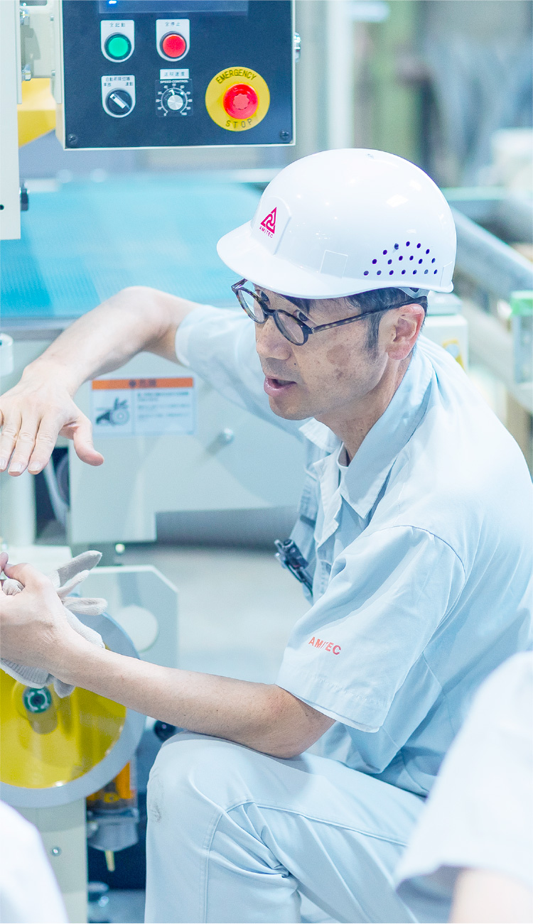 「産業機械の製造業」と聞くと、どんなイメージを持ちますか。コミュニケーションが活発なアミテックでは、会社のあちこちで笑顔が見られます。その理由は、どの部署のスタッフも、仕事に誇りを持って働いているから。そして会社も、お客様と社員のことを一番に考えて、職場環境を整えているからです。人生100年時代。長く働くのであれば、あちこちで笑顔の花が咲く職場の方が楽しく、がんばれる気がしますよね。アミテックは笑顔を引き出す職場です。